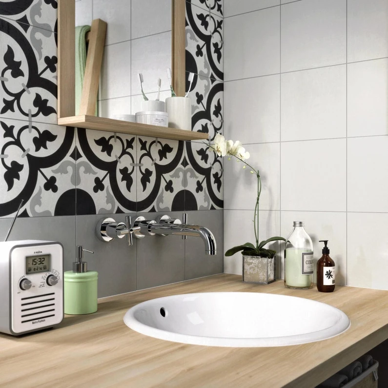 Carreau De Ciment Mur Uni Gris, Noir, Blanc Mat L.20 X L.20 Cm, Belle époque Suz