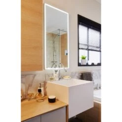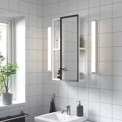 Le miroir à suspendre pour structure ENHET se fixe facilement à la structure murale. Il glisse sur les côtés pour accéder facilement à vos indispensables du quotidien.