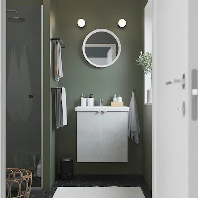 Un élément pour lavabo avec tablette est parfait pour ranger des serviettes ou des produits de beauté qui encombrent souvent l’espace.