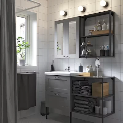 De nombreux rangements et de l’espace sur le plan de travail : une solution idéale pour la salle de ba