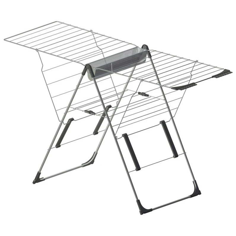 Ouverture et fermeture complète du séchoir en 3 mouvements grâce au système de biellettes et de charnières sur la grille centrale. Utilisation en demi-ouverture possible. Séchoir stable et robuste avec une large surface plane d’étendage. Idéal pour les draps, les couettes etc….