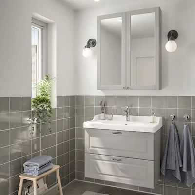 Le lavabo ovale à bords surélevés rappelle le design du début du siècle.