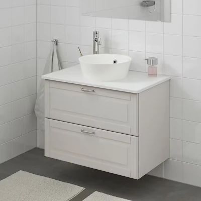 Le plateau et la vasque ronde ont un style simple et épuré, facile à combiner avec d’autres meubles de salle de bain.