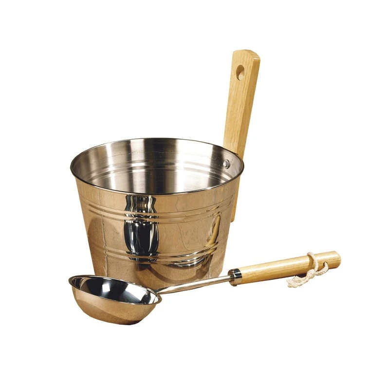 Composition : une seau d’arrosage et une louche en inox