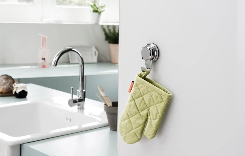 Fixation verrouillée par 1/3 de tour de molette Repositionnable à volonté Sans clou ni vis S’adapte sur toute surface parfaitement lisse : verre, carrelage, miroir ou métal Résistance à la rouille : 24h en conditions extrêmes