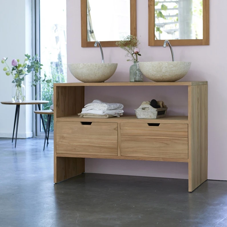 Il est équipé d’une niche ainsi que de 2 tiroirs qui vous permettront de ranger tout votre nécessaire de toilette. Ce meuble est monté, ce qui signifie qu’aucun assemblage n’est nécessaire de votre part ! C’est l’alternative au meuble en kit. Le meuble est livré en finition brute, avant toute utilisation, il est nécessaire d’appliquer un vernis incolore ref 69573693 – Vernis meubles et objets LUXENS, 0.25 l, incolore