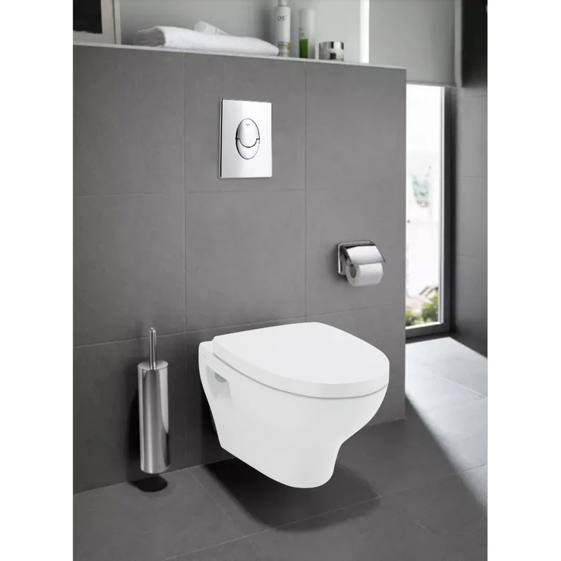Ensemble Bâti support Grohe Rapid SL mural pour mur porteur. Réservoir et mécanisme certifié NF. Réservoir isolé anti-condensation Livré avec plaque de commande double débit (réglage d’usine 3/6L). Chassis en Acier Epoxy. Cuvette suspendue Pop, abattant frein de chute en thermodur NF, déclipsable.