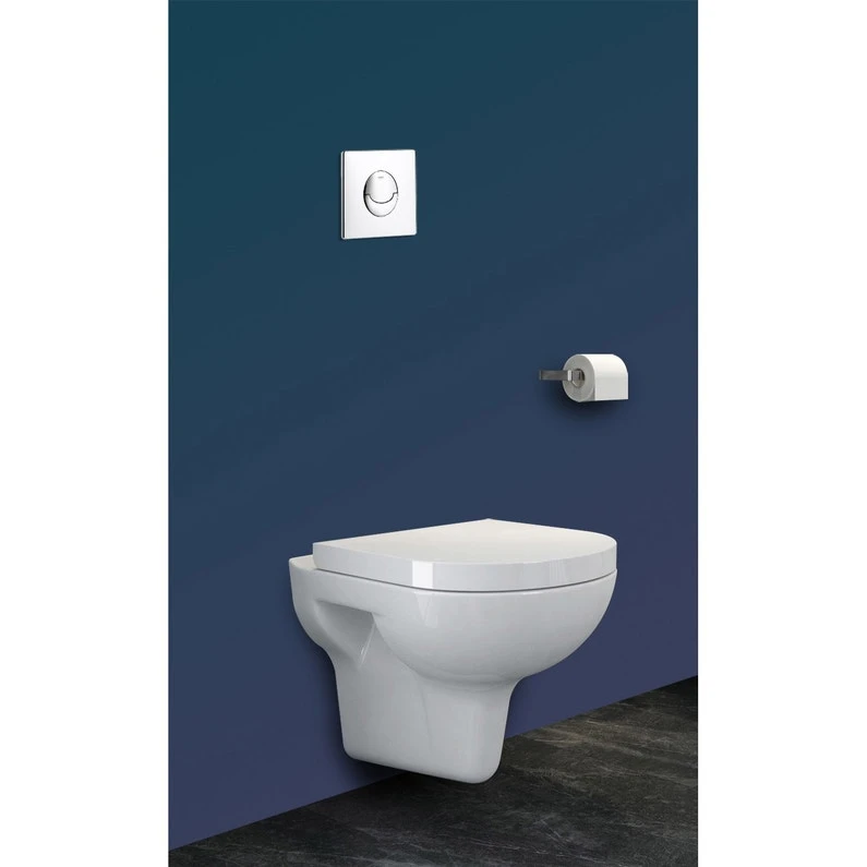 Ensemble Bâti support Grohe Rapid SL Autoportant. Réservoir et mécanisme certifié NF. Réservoir isolé anti-condensation Livré avec plaque de commande double débit (réglage d’usine 3/6L). Chassis en Acier Epoxy. Cuvette suspendue Velvet ans bride et abattant frein de chute
