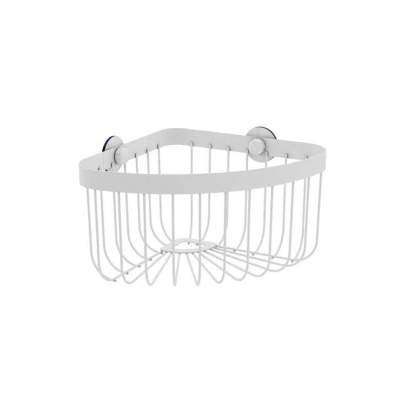 Panier d’angle de douche, fixation sans perçage à l’aide d’une ventouse. A l’aide du support pédagogique, je choisis le système de fixation adapté à la surface de ma douche.