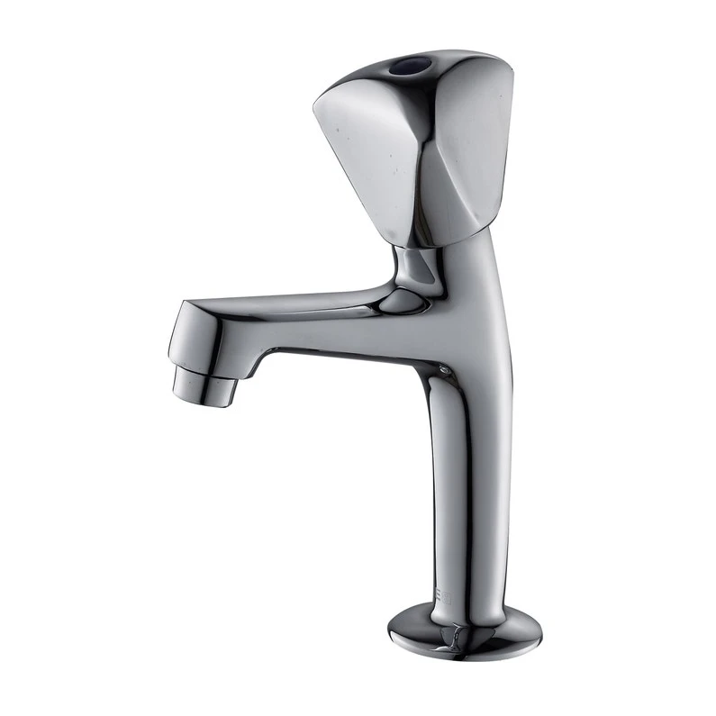 Robinet lave mains chromé hauteur 162mm Corps diamètre 20mm avec base 42.5mm Tête à clapet guidé Croisillon métal forme tricorne Pas de flexible Pas de vidage Kit de fixation EAU FROIDE UNIQUEMENT