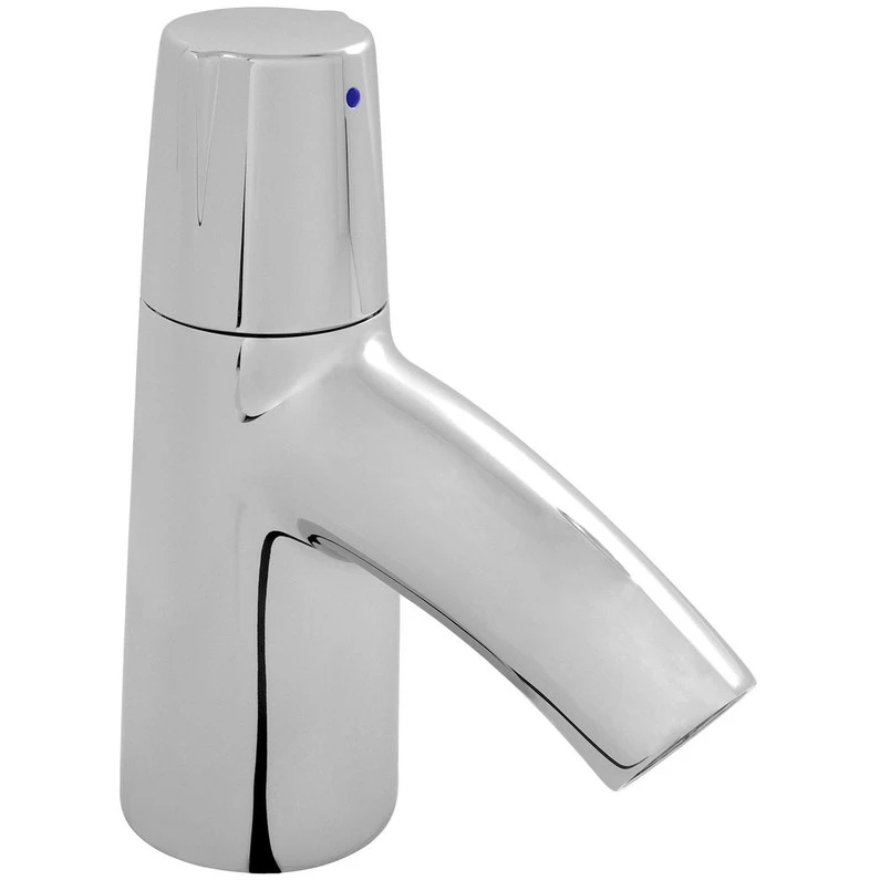 Robinet indépendant de lave-mains (eau froide) Tête à disques céramique 1/2 de tour. Brise-jet anti-calcaire intégré. Débit limité à 8 l/mn. Sans bonde de vidage.
